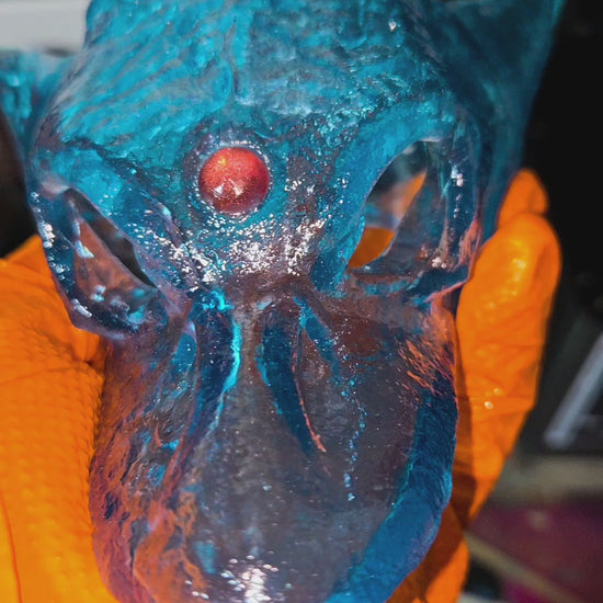 This offer includes a Gemstone of your choice 💎 Red, Green, Blue, Purple, Orange, Pink, Yellow or Clear with your Resin Printed Skull Just leave a Note or Red will be sent. Available in Medium or Large sizes, in your preferred skull color, complemented by an LED Thumb Light for Small and Medium or a Puck Light for Large, XL and XXL to enhance the figure's luminosity.