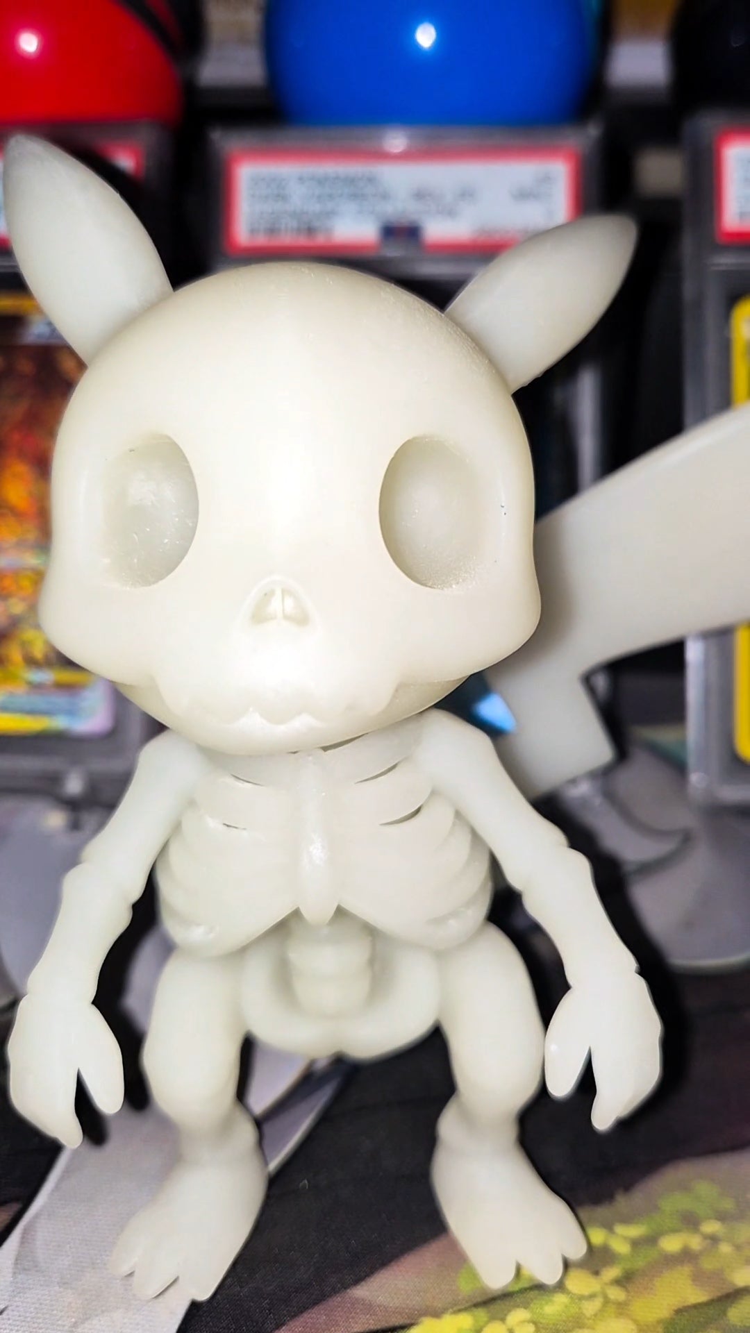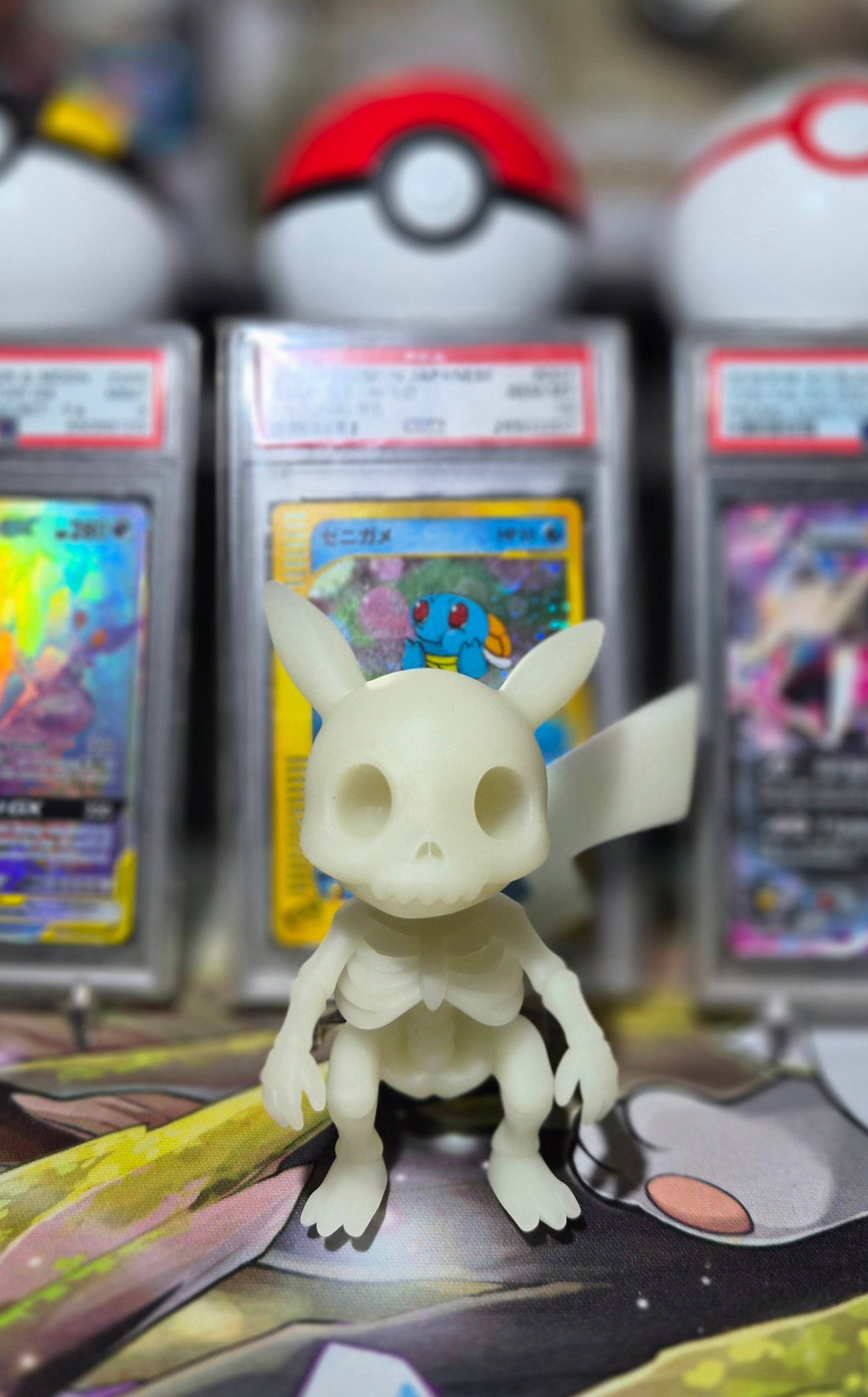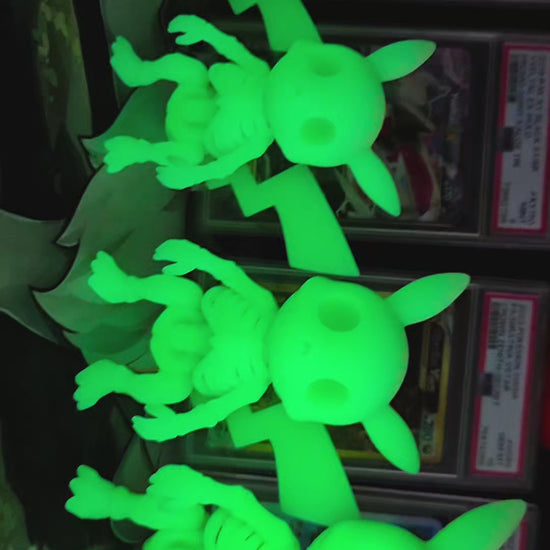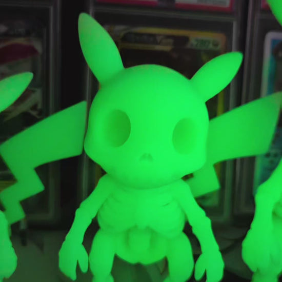 Bring your favorite Pokémon to life with a unique twist using these glow in the dark resin Pokémon skeleton prints. Expertly crafted with intricate details, each print captures the iconic Pokémon skeleton in a luminous resin that shines brilliantly in darkness. Perfect for collectors and fans alike, these prints add an exciting, eye-catching element to any display or room. Illuminate your space with a rare blend of art and fandom that glows when the lights go out.