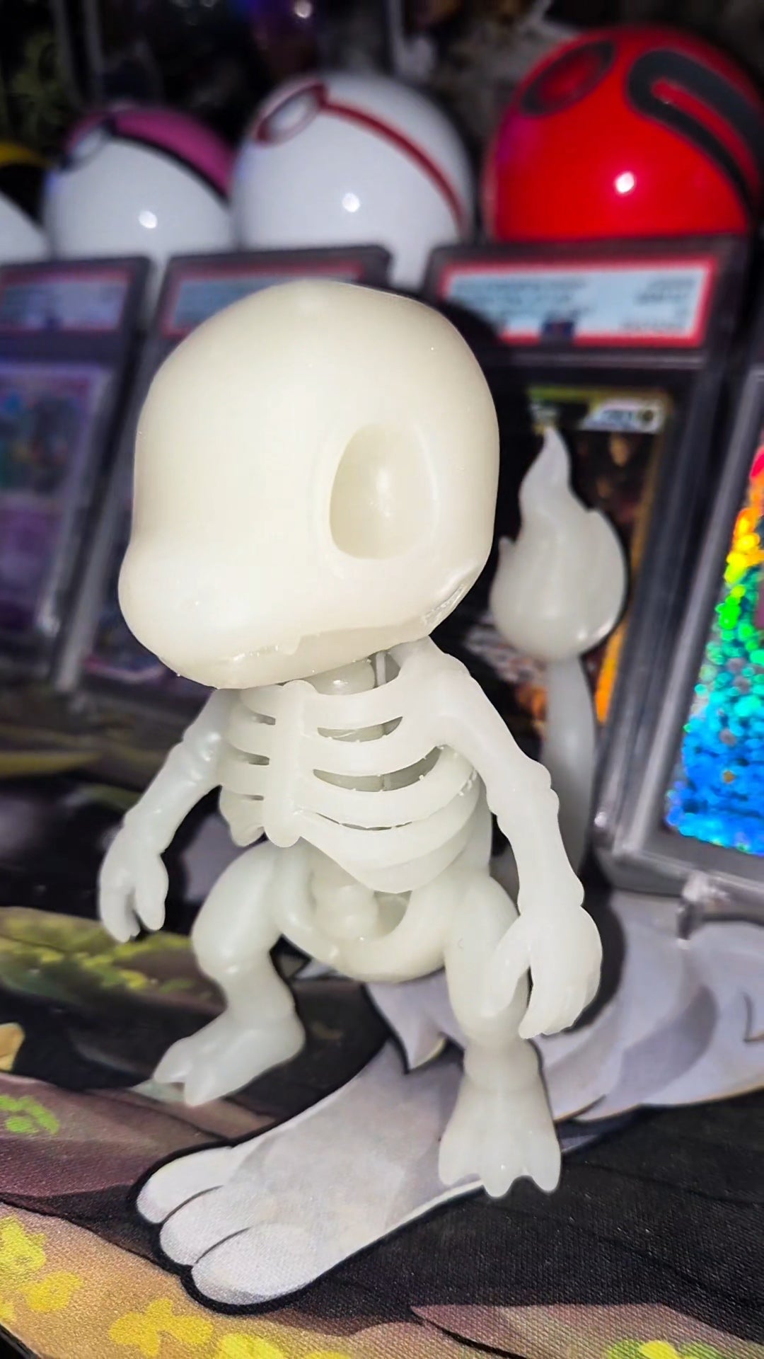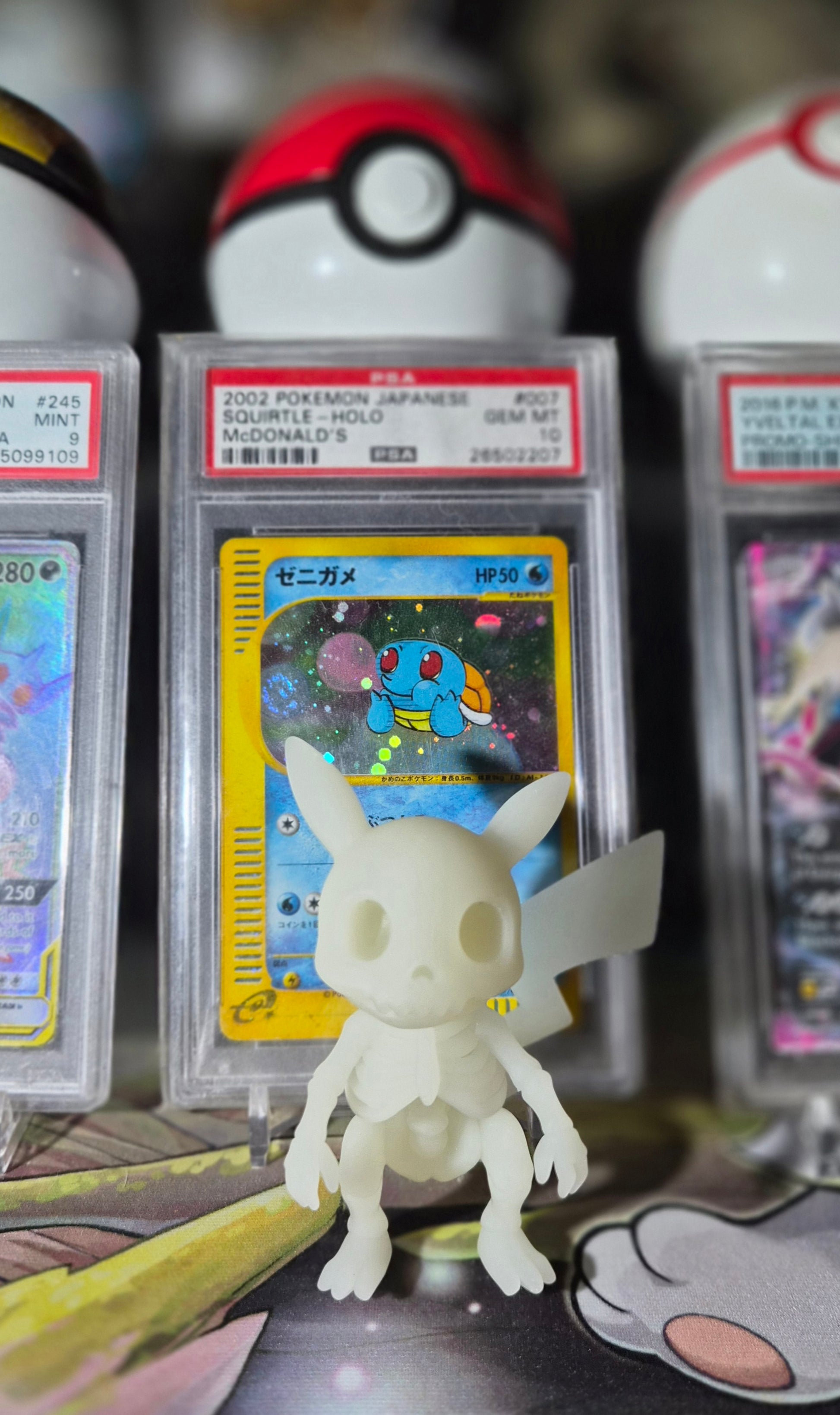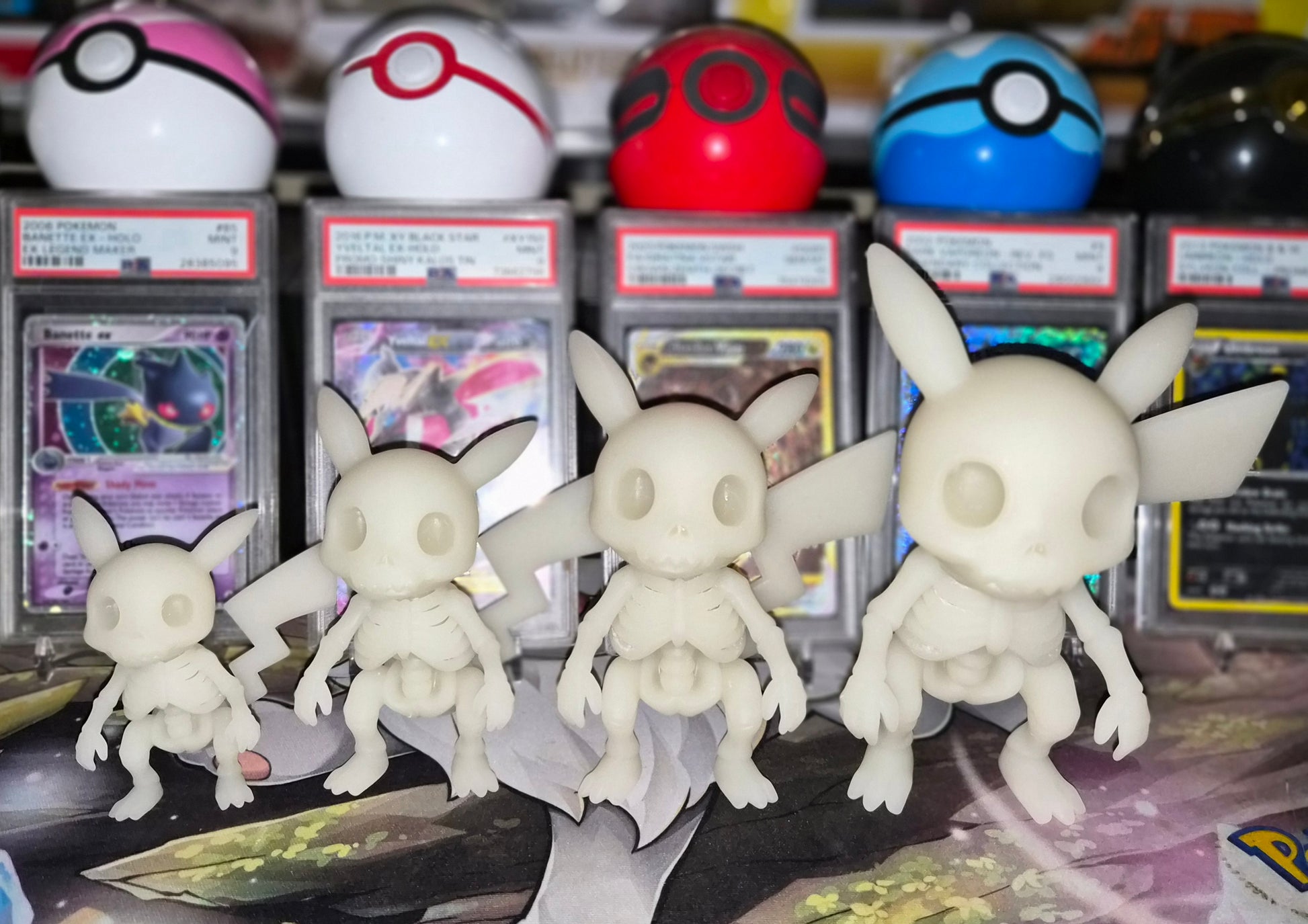 Bring your favorite Pokémon to life with a unique twist using these glow in the dark resin Pokémon skeleton prints. Expertly crafted with intricate details, each print captures the iconic Pokémon skeleton in a luminous resin that shines brilliantly in darkness. Perfect for collectors and fans alike, these prints add an exciting, eye-catching element to any display or room. Illuminate your space with a rare blend of art and fandom that glows when the lights go out.